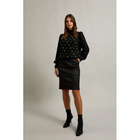 Ołówkowa spódnica Moodo w kolorze czarnym o długości przed kolano to klasyczny element garderoby każdej kobiety. Dzięki dopasowanemu krojowi podkreśla sylwetkę, zapewnia komfort noszenia i pasuje zarówno do stylizacji codziennych, jak i