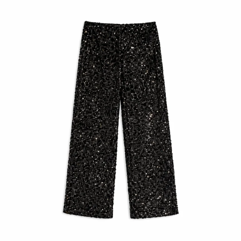 Czy czarne spodnie z cekinami pasują do eleganckich stylizacji?