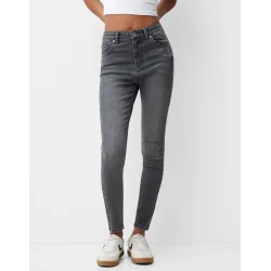 Wybierz jeansy skinny Bershka z wysokim stanem, jeśli szukasz modelu, który łączy modny fason, wygodę i kobiecy wygląd w jednej stylowej formie.