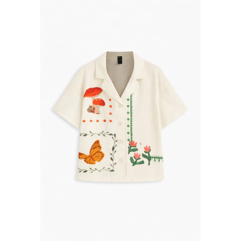 Koszula z krótkim rękawem i kołnierzykiem ozdobiona grafiką Cider w rozmiarze 2XL to stylowa propozycja dla kobiet, które lubią oryginalne ubrania, wygodny fason i modny wygląd. Połączenie klasycznego kołnierzyka z krótkim rękawem i dekoracyjną grafiką sprawia, że model wyróżnia się na tle codziennych stylizacji. To świetny wybór dla osób, które chcą dodać swojej garderobie lekkości, charakteru i nowoczesnego akcentu.