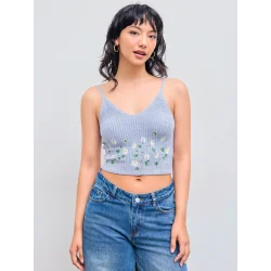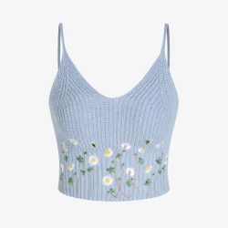 Dzianinowy krótki top Cider z kwiatowym motywem w rozmiarze S to modny i kobiecy element garderoby, który świetnie uzupełnia codzienne oraz sezonowe stylizacje. Połączenie dzianinowego materiału, krótkiego fasonu i kwiatowego wzoru nadaje całości lekki, dziewczęcy charakter. To doskonały wybór dla osób, które szukają krótkiego topu
