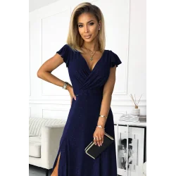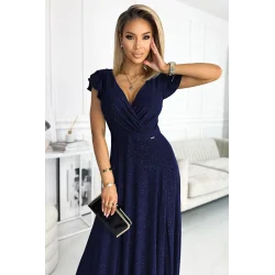 Połyskująca długa suknia NUMOCO granatowa w rozmiarze XXL to elegancka sukienka wieczorowa, która przyciąga uwagę efektownym wykończeniem i kobiecym krojem. Głęboki granatowy kolor, dekolt oraz długość maxi sprawiają, że model doskonale prezentuje się podczas wyjątkowych okazji. To idealny wybór dla kobiet, które szukają długiej sukni