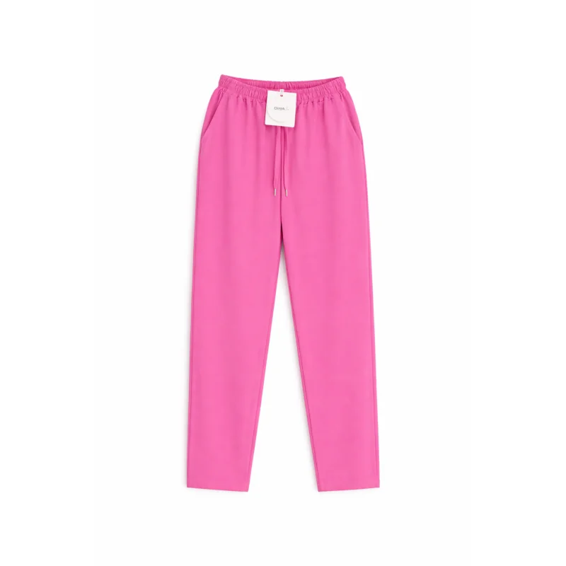 Lekkie spodnie dresowe damskie w kolorze fuksji, rozmiar uniwersalny to wygodny i wyrazisty element codziennej garderoby, który świetnie sprawdzi się w swobodnych stylizacjach. Intensywny kolor fuksji dodaje energii i modnego charakteru, a lekki fason zapewnia komfort noszenia przez cały dzień. To doskonały wybór dla kobiet, które szukają damskich spodni dresowych łączących wygodę z nowoczesnym wyglądem.