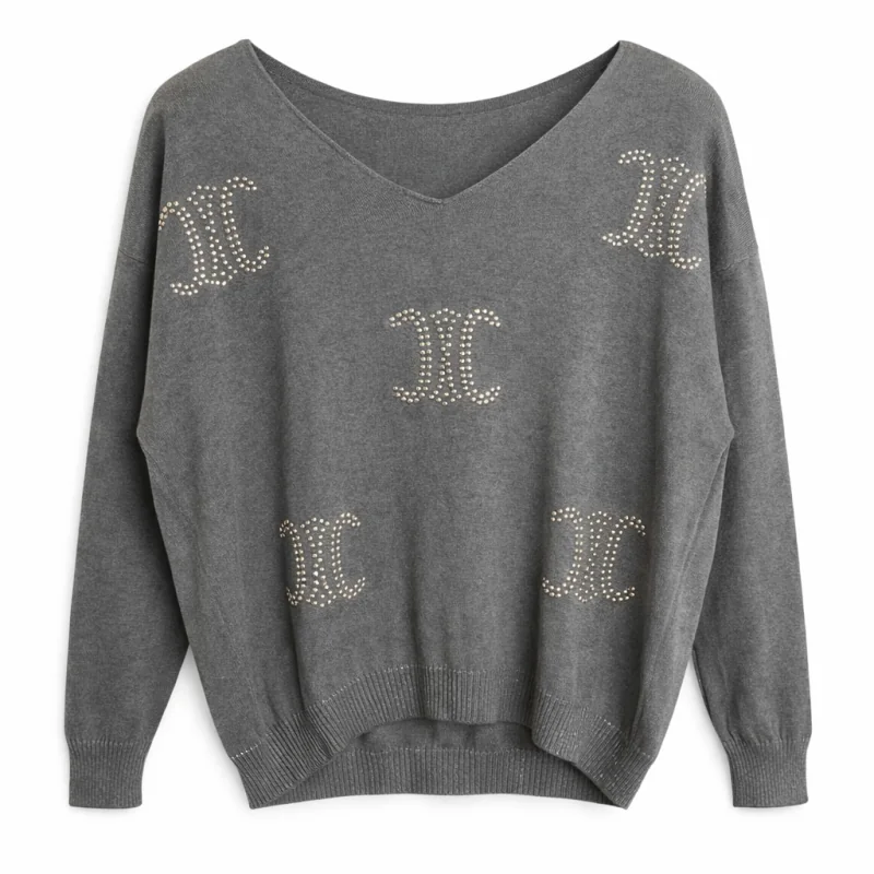 Sweter damski szary z ozdobnymi cyrkoniami to idealne połączenie wygody i elegancji, które sprawdzi się zarówno na co dzień, jak i na specjalne okazje. Modny szary sweter damski wyróżnia się subtelnym połyskiem, dzięki dekoracyjnym detalom, które nadają stylizacji wyjątkowego charakteru. To doskonały wybór dla kobiet ceniących komfort, styl