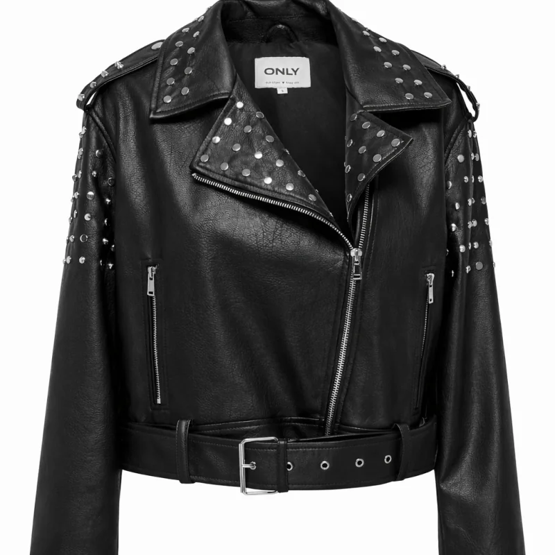 Wybierz czarną kurtkę ONLY z ćwiekami i dodaj swojej garderobie modny, mocny akcent, który przyciąga uwagę i podkreśla styl.