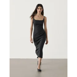Wybierz dopasowaną sukienkę midi z regulowanymi ramiączkami Massimo Dutti rozmiar S, jeśli szukasz kobiecej, uniwersalnej i łatwej do stylizacji sukienki. To elegancka baza, która sprawdzi się w wielu codziennych i okazjonalnych zestawach.