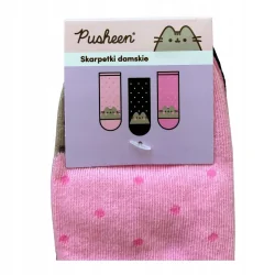 Krótkie skarpetki stopki Pusheen 3-pak kropeczki 39-42 to wygodny i praktyczny zestaw do codziennego noszenia, idealny do sneakersów, trampek, balerin i niskiego obuwia. Stopki Pusheen w kropeczki łączą komfort użytkowania z uroczym, rozpoznawalnym motywem popularnego kotka. To krótkie skarpetki damskie Pusheen, które sprawdzą się w pracy, szkole,
