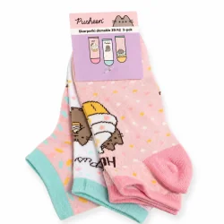 Skarpetki damskie stopki Pusheen 3 pary rozmiar 39-42 to praktyczny komplet krótkich skarpetek do codziennego noszenia, idealny do trampek, sneakersów, balerin i niskiego obuwia. Stopki damskie Pusheen łączą wygodę użytkowania z uroczym, rozpoznawalnym motywem popularnego kotka. To funkcjonalny zestaw 3 par skarpetek damskich, który sprawdzi się w