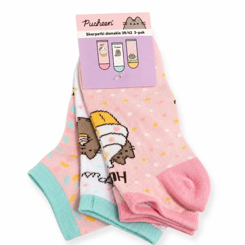 Wybierz skarpetki damskie stopki Pusheen 3 pary rozmiar 39-42, jeśli szukasz wygodnego, praktycznego i uroczego kompletu do codziennego noszenia. To zestaw, który łączy funkcjonalność krótkich skarpetek z charakterystycznym stylem Pusheen.