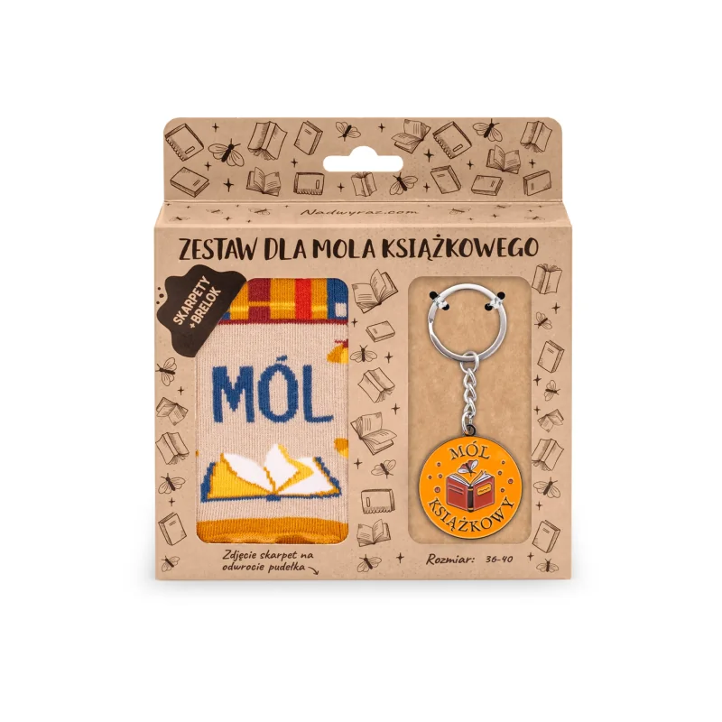Psotnik kołatek, pustosz kradnik, rybik cukrowy - mól książkowy niejedno ma imię! Jeśli Ty również masz tendencję do żerowania w starych książkach i innych skupieniach wiekowego papieru, niewykluczone, że jesteś jednym z nich! Zestaw DLA MOLA KSIĄŻKOWEGO, w skład którego wchodzą stylowe skarpety i brelok, to idealna propozycja na prezent