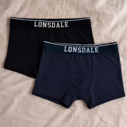 Bokserki męskie 2-pack LONSDALE granat/czarny XL to praktyczny zestaw bielizny na co dzień, który sprawdzi się zarówno w pracy, jak i w domu czy w podróży. Dwie pary w klasycznych kolorach granatowym i czarnym ułatwiają skompletowanie garderoby, a fason bokserek zapewnia wygodne dopasowanie pod spodnie i spodenki.