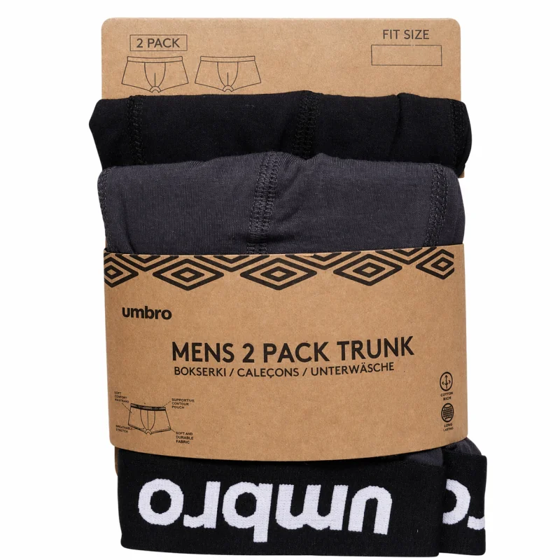 Wybierz bokserki męskie Umbro 2 pack rozmiar L, jeśli szukasz wygodnego, praktycznego i sportowego kompletu bielizny na co dzień.