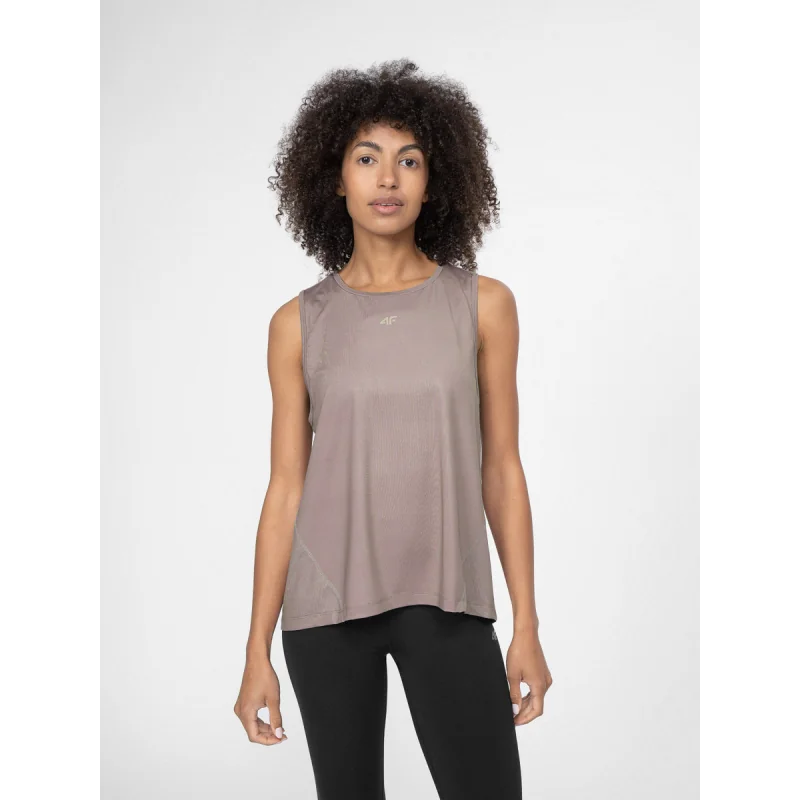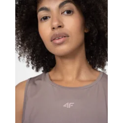 Damski top treningowy 4F to doskonały wybór dla aktywnych kobiet ceniących komfort i funkcjonalność podczas ćwiczeń. Wykonany z szybkoschnącego materiału, zapewnia uczucie suchości i wygodę nawet podczas intensywnych treningów. Jasny brązowy kolor i dopasowany krój sprawiają, że top łączy styl z praktycznością.