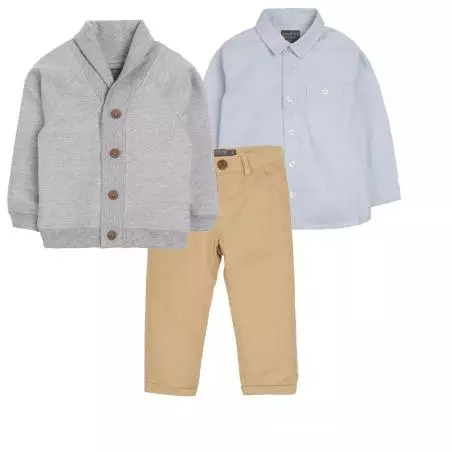 Elegancki komplet chłopięcy z kolekcji Little Gentleman Colection. W skład kompletu wchodzą: spodnie, koszula oraz sweter. Zestaw ten stanowi idealną stylizację na wyjątkowe okazje - uroczystości rodzinne czy święta. W nim każdy chłopiec wyglądać będzie jak mały dżentelmen.