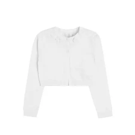 Białe bolerko dla dziewczynki ozdobione tiulowymi kwiatkami. Dzianinowe bolerko z kolekcji Young Ladies Collection będzie świetnym uzupełnieniem kreacji. Każdy rodzic doceni klasyczny krój, miłą w dotyku dzianinę oraz subtelne zdobienia, które podkreślają doniosłość i wagę rodzinnych uroczystości.