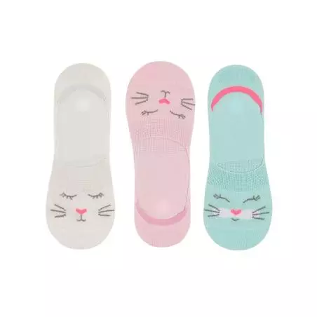 Zestaw skarpetek typu stopki dla dziewczynki (3 szt.). Skarpetki to istotny element dziecięcego stroju. Chronią stopy przed zimnem, a także przed otarciami i odparzeniami. Model low cut liners z nadrukiem kotka doskonale sprawdzi się do balerinek czy z obuwiem sportowym typu sneakers