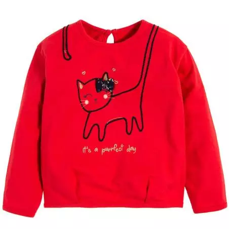 BLUZKA DZIEWCZĘCA Z DŁUGIM RĘKAWEM CZEROWNA KOTEK 128 CM COOL CLUB - Cool Club