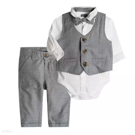 • STRÓJ DLA CHŁOPCA 4 ELEMENTY BODY KOSZULOWE + SPODNIE + KAMIZELKA + MUCHA 68 CM COOL CLUB - Cool Club