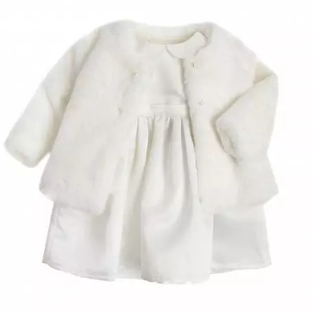W skład kompletu wchodzi sukienka z krótkim rękawkiem oraz żakiet