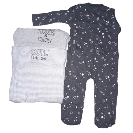 Przedstawiamy zestaw trzech uroczych i praktycznych pajacyków dla małego chłopca, które zapewnią mu wygodę i swobodę podczas snu i zabawy. Każdy z nich to unikatowy wzór w odcieniach szarości, co sprawia, że zestaw jest nie tylko funkcjonalny, ale także stylowy.