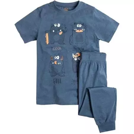 Dwuczęściowa piżama chłopięca, w skład której wchodzą: koszulka z krótkim rękawem i spodnie z długimi nogawkami.