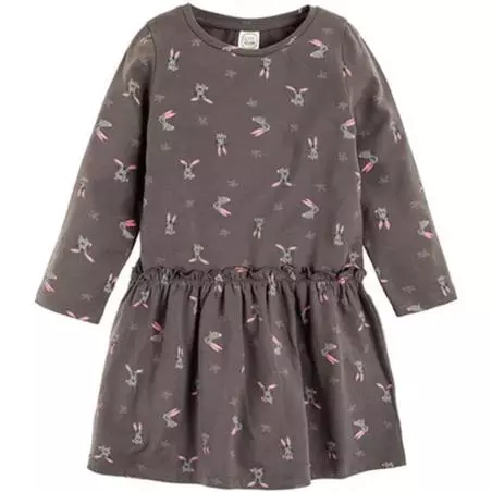 Bawełniana sukienka dla dziewczynki, zdominowana przez stado uroczych króliczków.