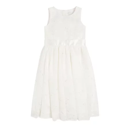 Tiulowa sukienka bez rękawów z haftowanymi kwiatami. Balowy fason to doskonały wybór na eleganckie okazje, których nie brakuje w okresie wiosenno-letnim. Efektowna kreacja zapewni wyjątkowy look na weselu czy szkolnym balu.