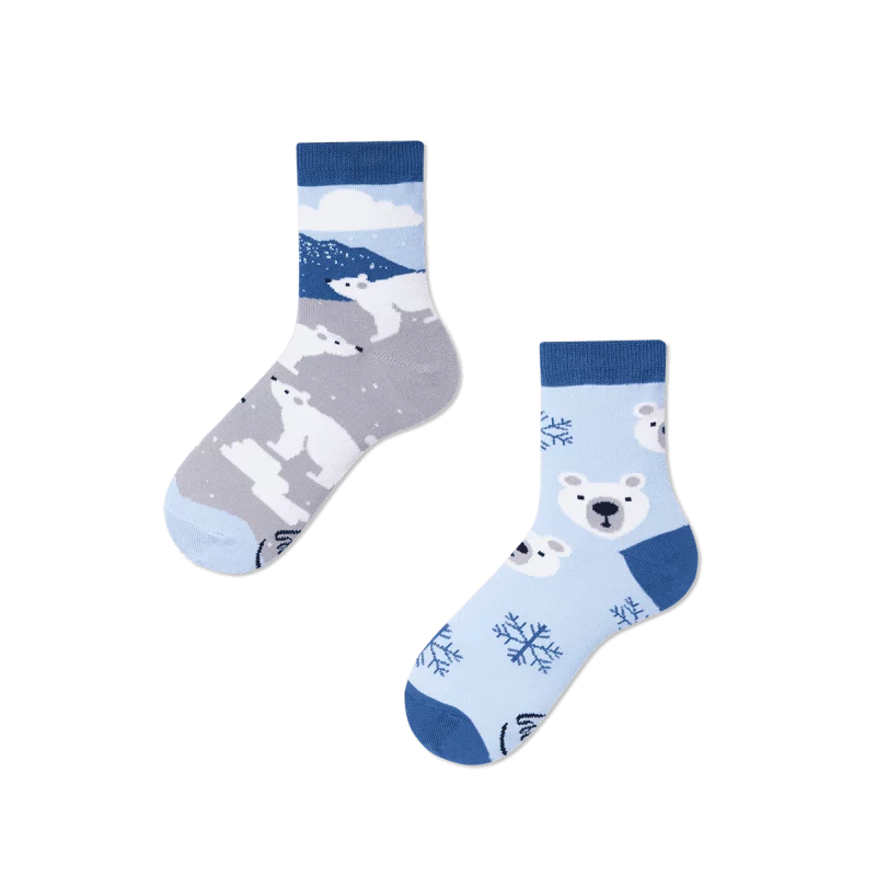 Urocze skarpetki dla dzieci z polarnymi misiami w śnieżnej scenerii będą idealne nie tylko zimą. Oprócz lepienia bałwana czy jazdy na sankach można z powodzeniem uprawiać w nich inne psoty i figle. Wystarczy tylko odrobina wyobraźni, której dzieciom... nie brakuje. Wbrew pozorom skarpetki dziecięce