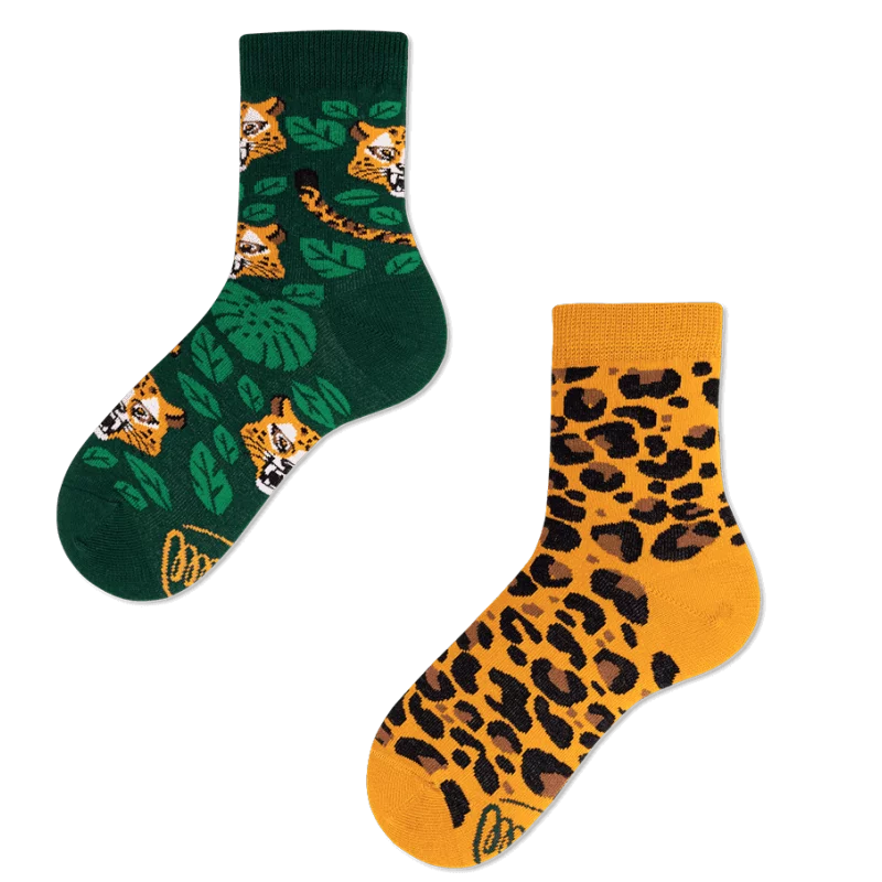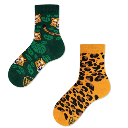 Dziecięce skarpetki w cętki – idealne do dzikich zabaw i wspólnych psot. Spodobają się małym pogromcom niebezpiecznych zwierzaków, a także dzieciakom, które odważnie kroczą ku przygodzie – nawet, jeśli to droga przez dżunglę przeciwności. To w końcu model dla poszukiwaczy mocnych wrażeń! To wyjątkowe