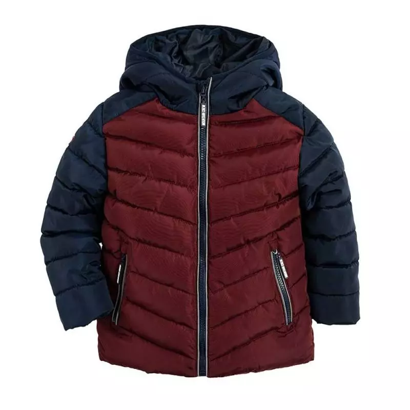 • KURTKA ZIMOWA CHŁOPIĘCA Z KAPTUREM BORDOWO GRANATOWA 110 CM COOL CLUB - Cool Club