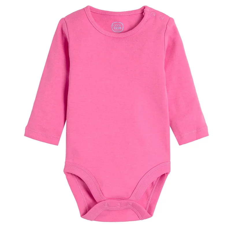 To urocze body dziewczęce na długi rękaw marki Cool Club w kolorze różowym to doskonały wybór dla maluszek. Wykonane z miękkiej i delikatnej bawełny, zapewnia komfort i ciepło przez cały dzień. Body w rozmiarze 80, odpowiednie dla dzieci w wieku około 12-18 miesięcy, ma praktyczne napy w kroku, które ułatwiają przebieranie i zmianę