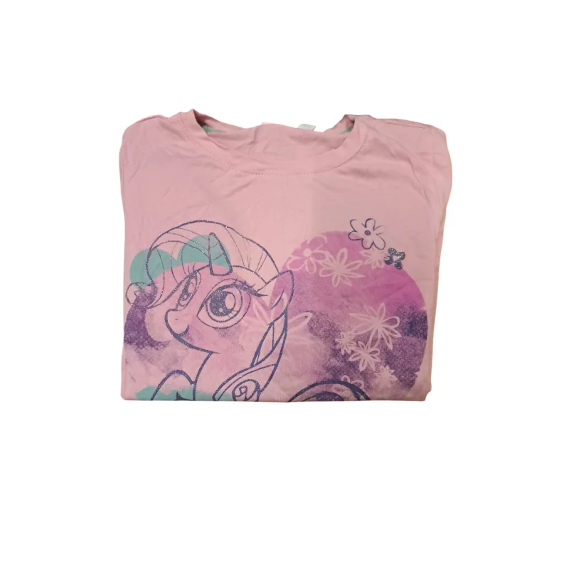 T-shirt dziewczęcy z motywem My Little Pony. Urocza bluzka z wizerunkiem Fluttershy to marzenie niejednej dziewczynki. Luźny krój zapewni dziecku wygodę oraz nieograniczoną swobodę ruchów. Bluzka doskonale sprawdzi się w domu, w przedszkolu czy podczas zabawy z rówieśnikami.