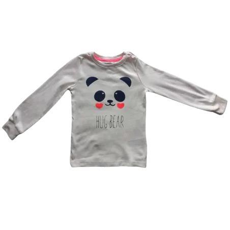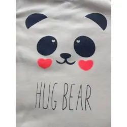 Bluzka ozdobiona jest napisem "Hug Bear" oraz nadrukiem buźki misia, co nadaje jej wyjątkowego uroku i dziecięcej radości. Te elementy nadają bluzce nie tylko estetycznego wyglądu, ale również sprawiają, że nosząca ją dziewczynka czuje się wyjątkowo i komfortowo.