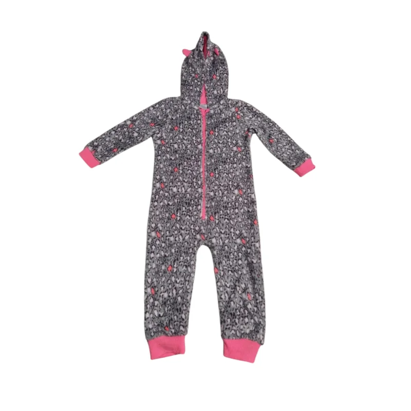 Dziewczęca piżama kombinezon w pantere z przytulnego ciepłego polaru koralowego