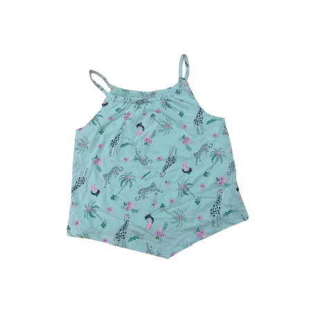 T-shirt dziewczęcy bez rękawów z egzotycznym wzorem .