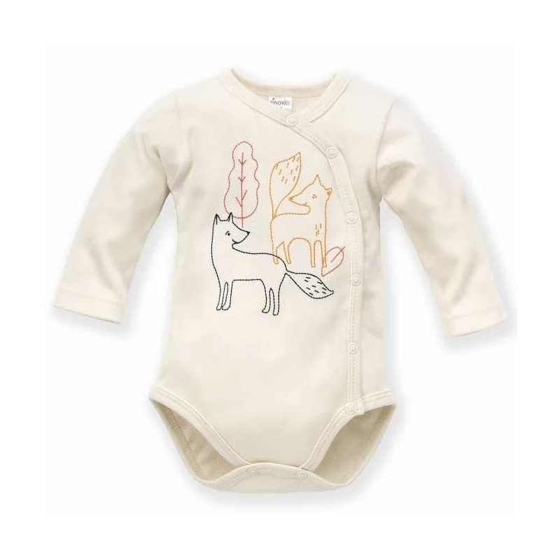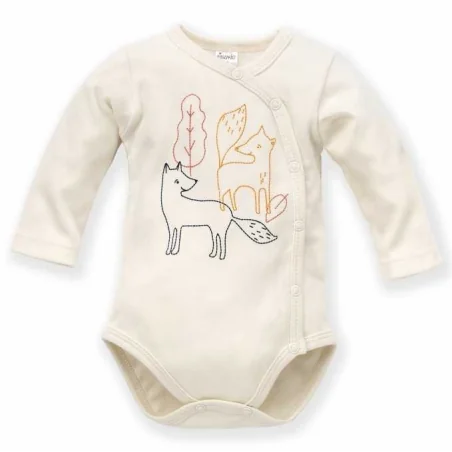 Body niemowlęce Pinokio z kolekcji Secret Forest w kolorze ecru to wyjątkowo miękki i praktyczny element garderoby każdego maluszka. Wykonane z certyfikowanej bawełny, zapewnia pełen komfort noszenia, a całkowite rozpięcie ułatwia ubieranie i przewijanie dziecka. Model w rozmiarze