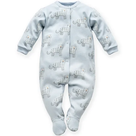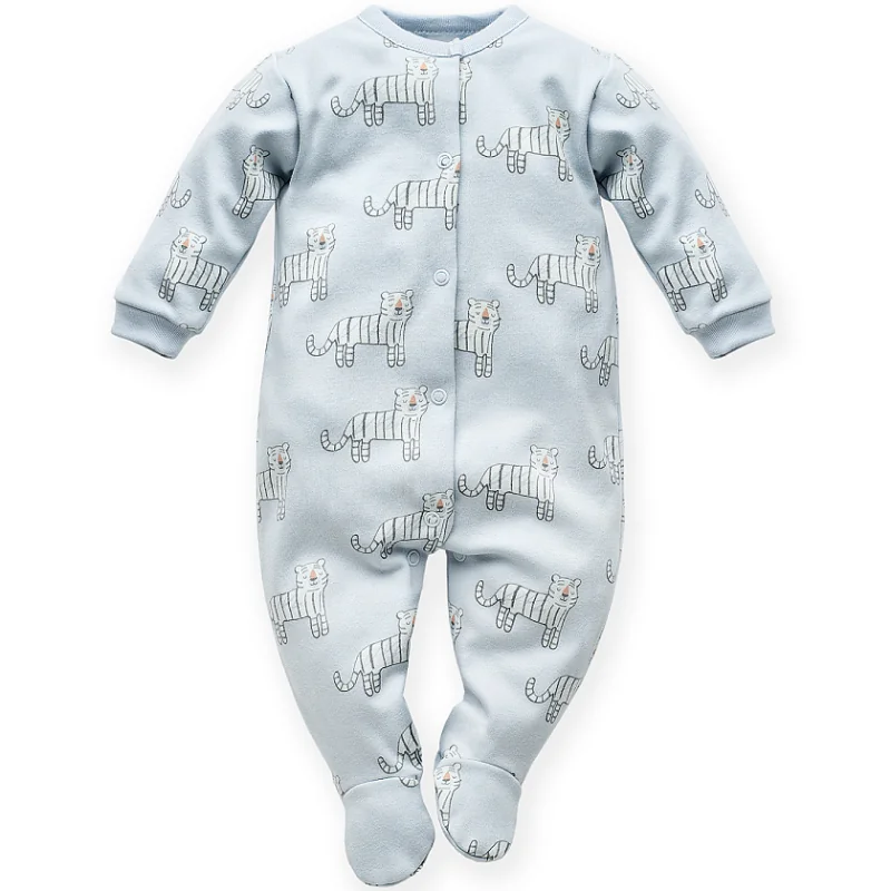 Pajac niemowlęcy Pinokio z kolekcji Wild Animals w rozmiarze 74 to wygodny i praktyczny element garderoby dla maluszków od około 6. do 9. miesiąca życia. Wykonany z miękkiej, certyfikowanej bawełny, zapewnia pełen komfort noszenia, idealnie nadaje się na sen, do zabawy lub na spacery w chłodniejsze dni. Delikatny niebieski kolor i subtelny nadruk wpisują się w nowoczesny, dziecięcy styl.