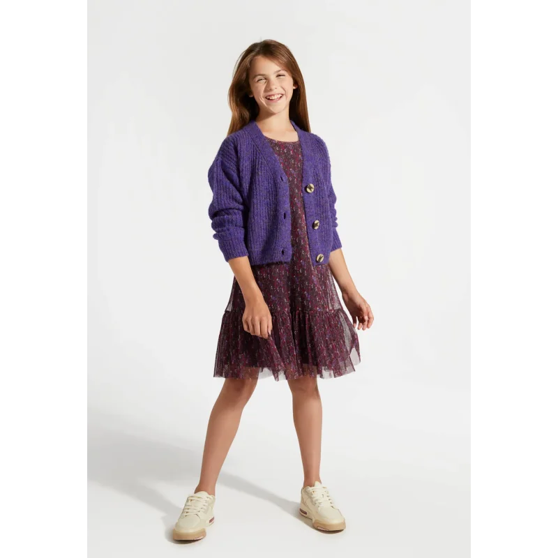 Delikatna i stylowa sukienka tiulowa zaprojektowana z myślą o dziewczynkach, które cenią elegancję połączoną z wygodą. Kwiatowy wzór na całej powierzchni nadaje jej dziewczęcego uroku, a plisowany tiul subtelnie podkreśla lekkość stylizacji. Model idealnie sprawdzi się zarówno na wyjątkowe okazje, jak i rodzinne uroczystości.