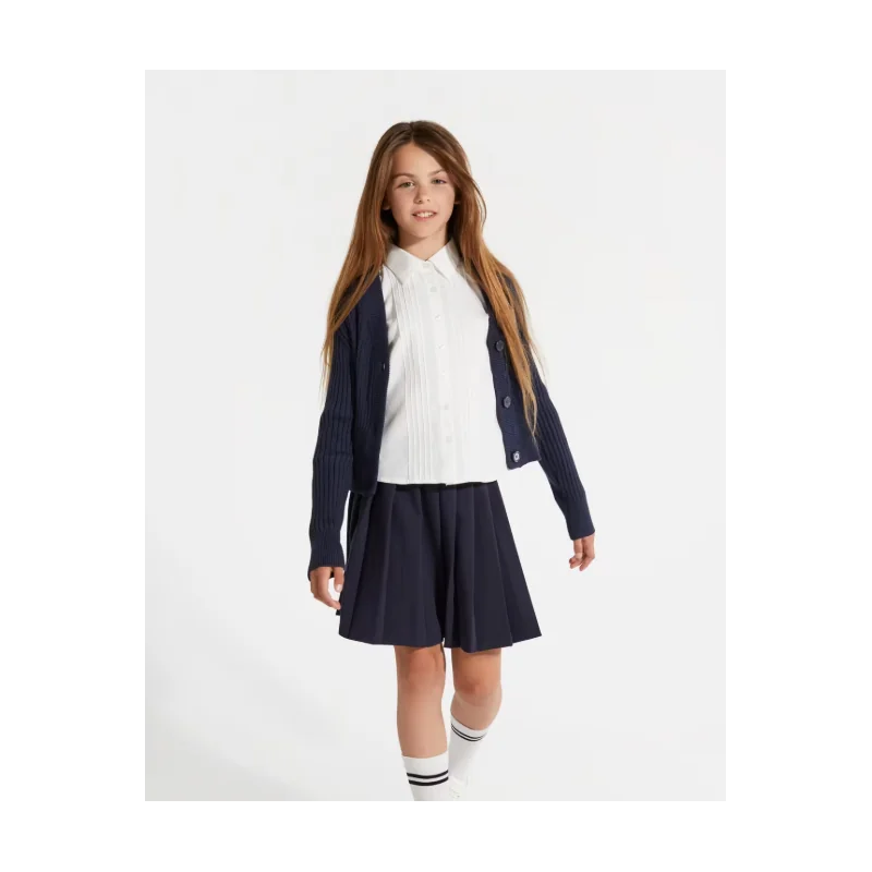 Sukienka łączy elegancki wygląd z komfortem noszenia, co jest szczególnie ważne w przypadku odzieży dziecięcej. Klasyczna kolorystyka i plisowany fason sprawiają, że model prezentuje się stylowo, a jednocześnie pozostaje wygodny i praktyczny podczas codziennego użytkowania.