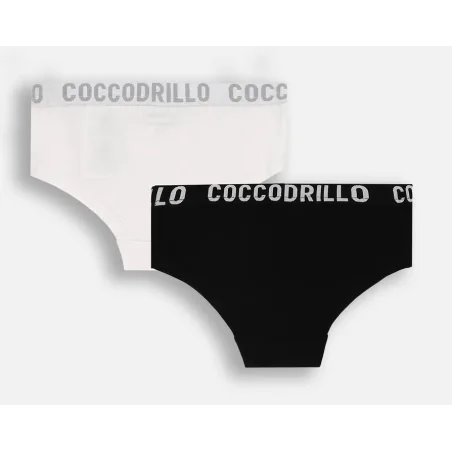 Praktyczny zestaw dwóch par majtek dziewczęcych marki Coccodrillo w klasycznych kolorach białym i czarnym to niezastąpiony element codziennej garderoby. Wykonane z miękkiej i przewiewnej bawełny, zapewniają komfort noszenia przez cały dzień, idealny dopasowany krój nie