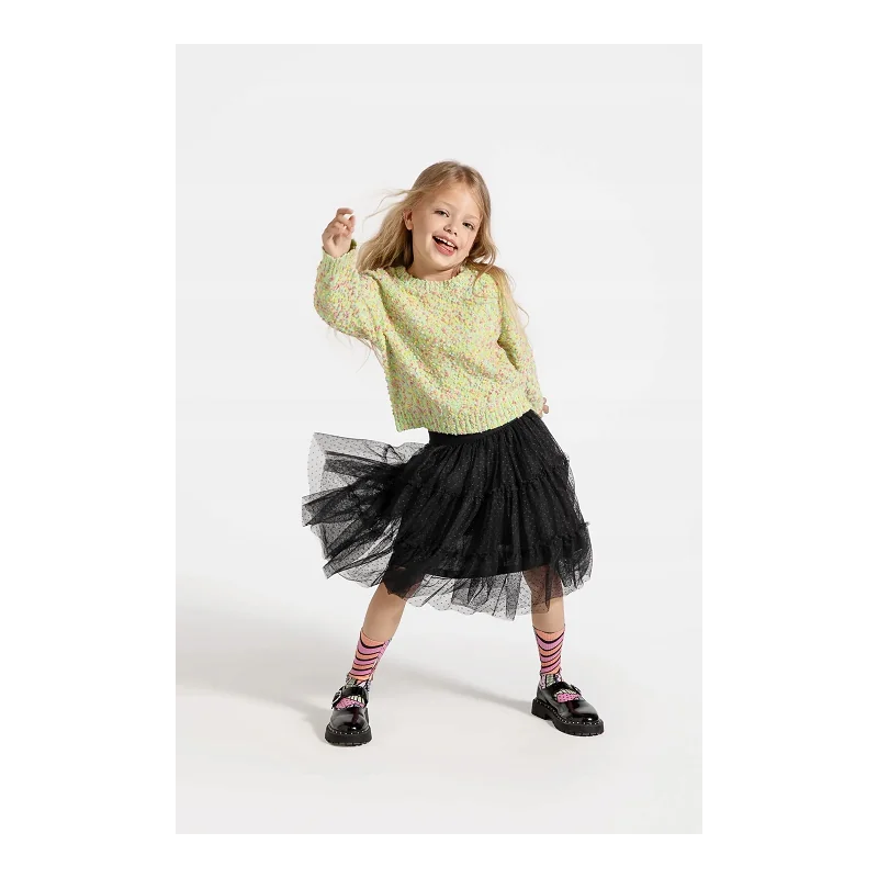Urocza tiulowa spódniczka dla dziewczynki z kolekcji CARTOONS GIRL KIDS to wyjątkowy element garderoby, który łączy lekkość, wygodę i dziewczęcy styl. Rozkloszowany fason pięknie układa się podczas ruchu, a elastyczna guma w pasie zapewnia komfort noszenia i łatwe dopasowanie