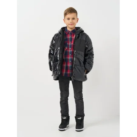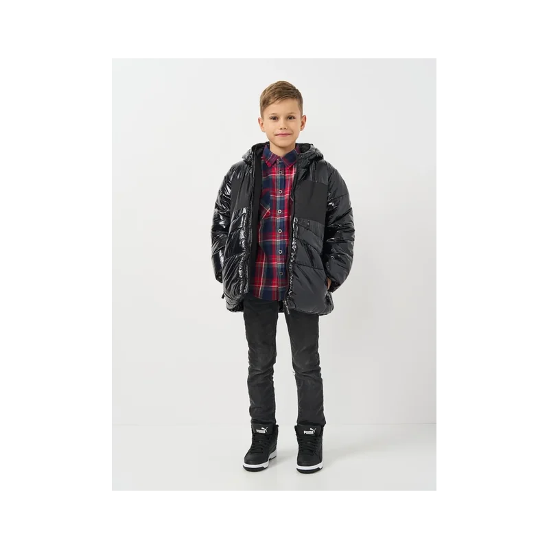 Praktyczna i funkcjonalna zimowa kurtka chłopięca z kolekcji OUTERWEAR BOY JUNIOR łączy nowoczesny design z ochroną przed niekorzystnymi warunkami atmosferycznymi. Lakierowany, pikowany materiał skutecznie chroni przed chłodem i śniegiem, a kaptur i ergonomiczny krój zapewniają komfort