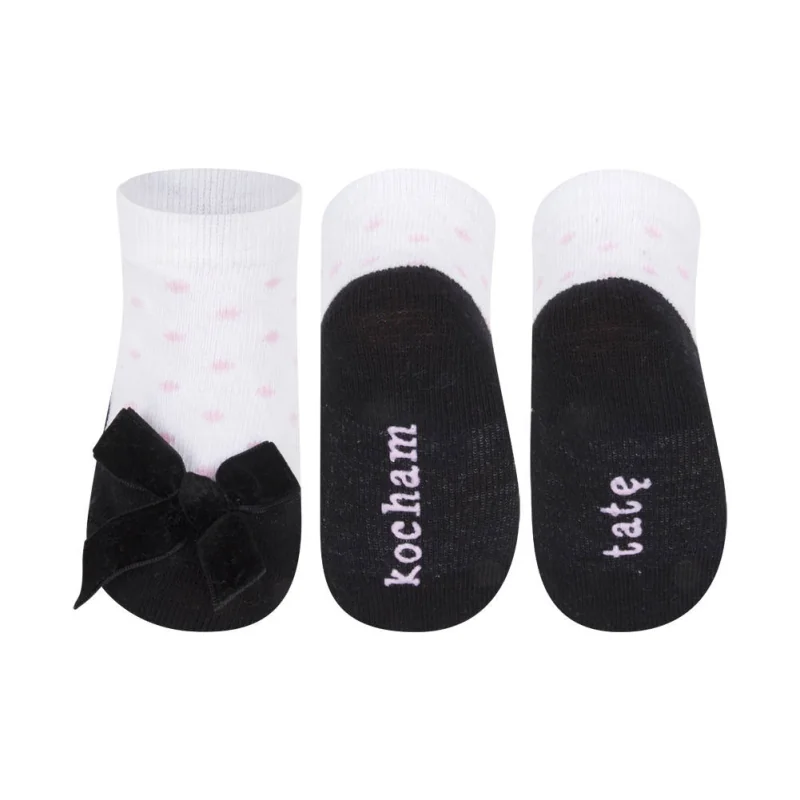 Skarpetki niemowlęce SOXO balerinki z napisem „Kocham Tatę” w rozmiarze 16-18 to uroczy i bezpieczny dodatek do garderoby najmłodszych. Klasyczny czarny kolor połączony z czytelnym napisem sprawia, że skarpetki doskonale nadają się zarówno do codziennego