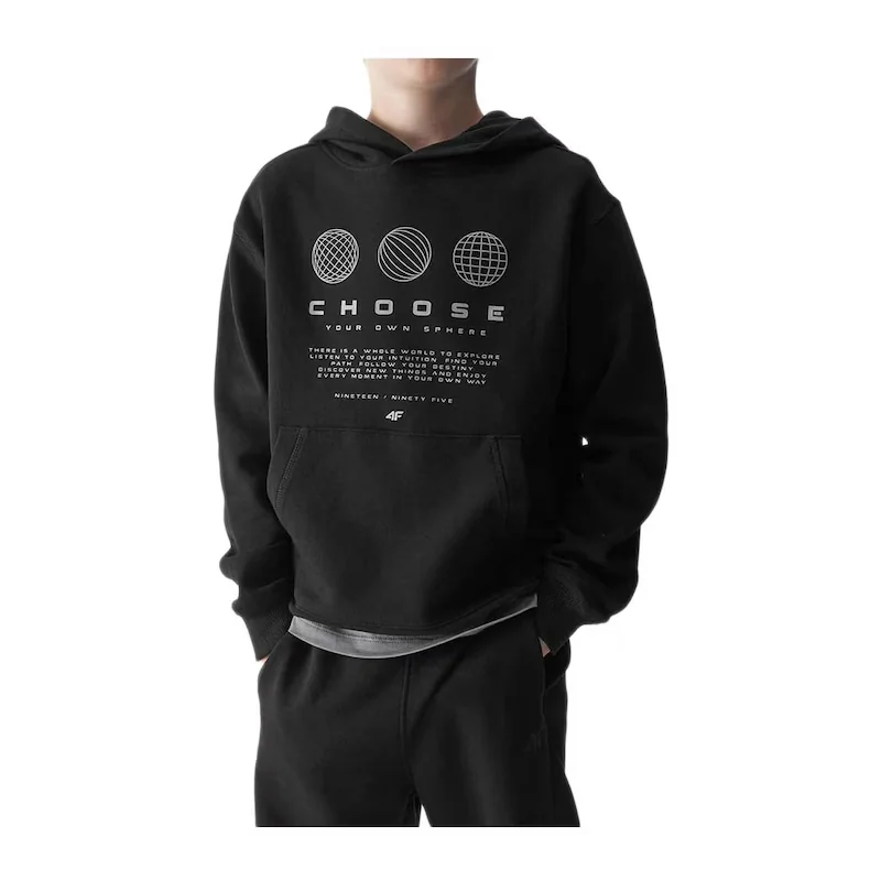 Bluza dresowa z kapturem chłopięca 4F sprawdzi się do szkoły, na trening, spacer, wyjazd, zajęcia sportowe oraz codzienne noszenie. To praktyczny model dla dziecka, które potrzebuje wygodnej bluzy na chłodniejsze dni oraz do aktywnego spędzania czasu. Dzięki uniwersalnemu kolorowi i sportowemu fasonowi łatwo dopasować ją do wielu dziecięcych stylizacji.
