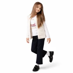 Granatowe spodnie dziewczęce Coccodrillo typu dzwony sprawdzą się w codziennym użytkowaniu oraz podczas różnych okazji, gdy liczy się wygoda i estetyczny wygląd. Można je zestawić z T-shirtem, bluzą, swetrem lub elegantszą bluzką, tworząc komfortową stylizację na chłodniejsze i przejściowe dni. To uniwersalny model do dziecięcej garderoby.