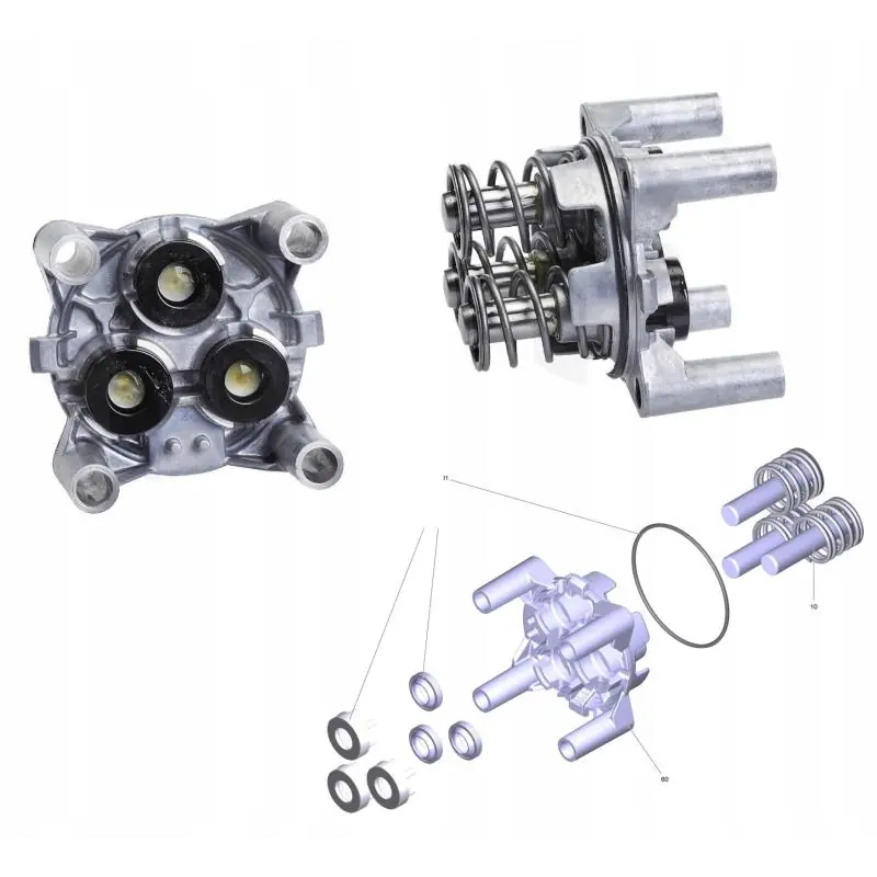 Kompletna prowadnica tłoków 9.013-340.0 marki Karcher to gotowy do montażu zestaw części przeznaczony do myjek ciśnieniowych z serii K4 i K5. Produkt zawiera prowadnicę, 3 tłoki, pierścienie uszczelniające, oringi oraz sprężyny, co pozwala na szybką i bezproblemową