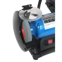 Uniwersalna szlifierka stołowa 200 mm łącząca kamień szlifierski i taśmę ścierną to wszechstronne narzędzie do ostrzenia, czyszczenia i precyzyjnego szlifowania metalu oraz drewna. W zestawie znajduje się regulowana podstawa/stojak z miejscem na akcesoria, co zwiększa