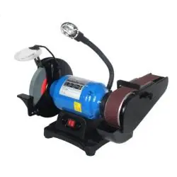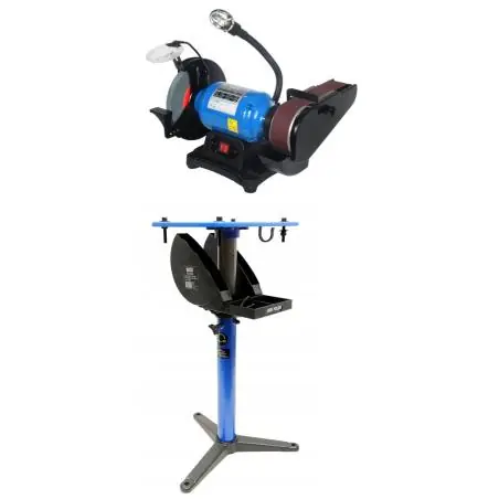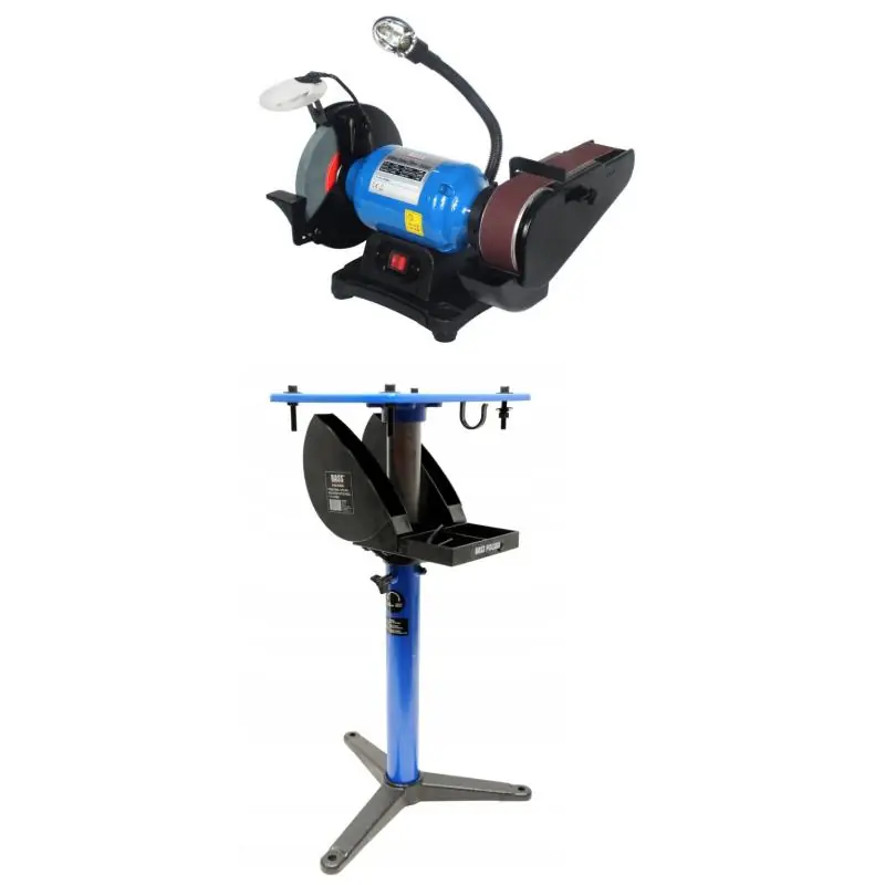 Uniwersalna szlifierka stołowa 200 mm łącząca kamień szlifierski i taśmę ścierną to wszechstronne narzędzie do ostrzenia, czyszczenia i precyzyjnego szlifowania metalu oraz drewna. W zestawie znajduje się regulowana podstawa/stojak z miejscem na akcesoria, co zwiększa wygodę i bezpieczeństwo pracy.