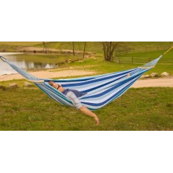 Hamak ogrodowy 2-osobowy Luxe XXL o wymiarach 250 cm na 150 cm to komfortowe i wytrzymałe rozwiązanie dla miłośników relaksu na świeżym powietrzu. Idealny dla par lub osób ceniących przestrzeń podczas odpoczynku w ogrodzie, na tarasie czy balkonie. Produkt łączy w sobie trwałość materiałów z
