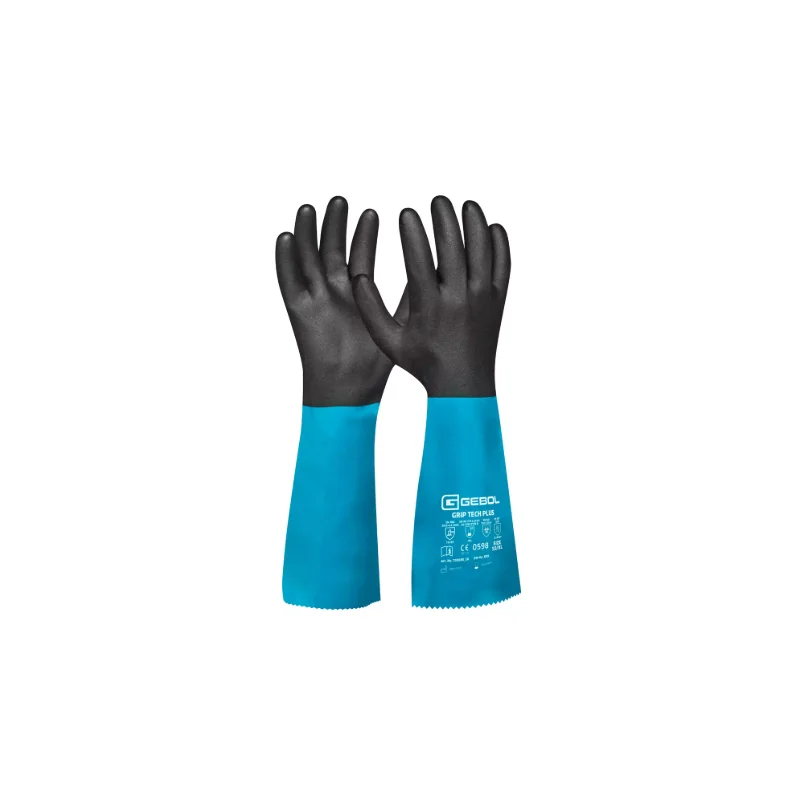 Gebol Grip Tech Plus w rozmiarze L (9) to wysokiej klasy, przedłużone rękawice ochronne, które łączą nitrylową powłokę, PCW oraz wyściółkę z nylonowej dzianiny. Zostały zaprojektowane do pracy w warunkach narażenia na chemikalia, kwasy, oleje i tłuszcze, zapewniając